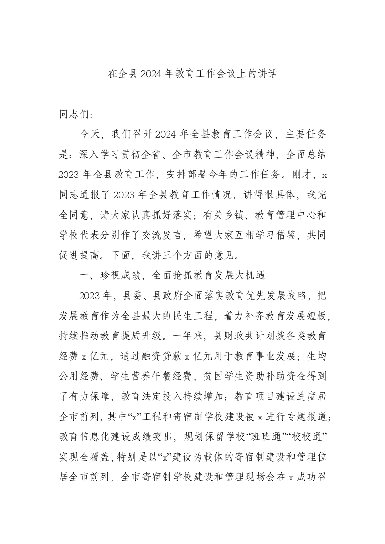 / 在全县2024年教育工作会议上的讲话
