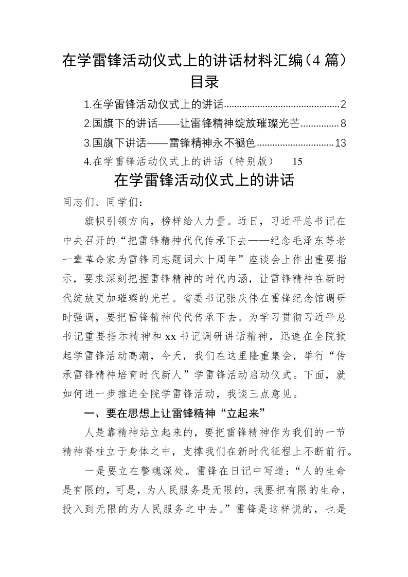 / 在学雷锋活动仪式上的讲话稿材料汇编(4篇)