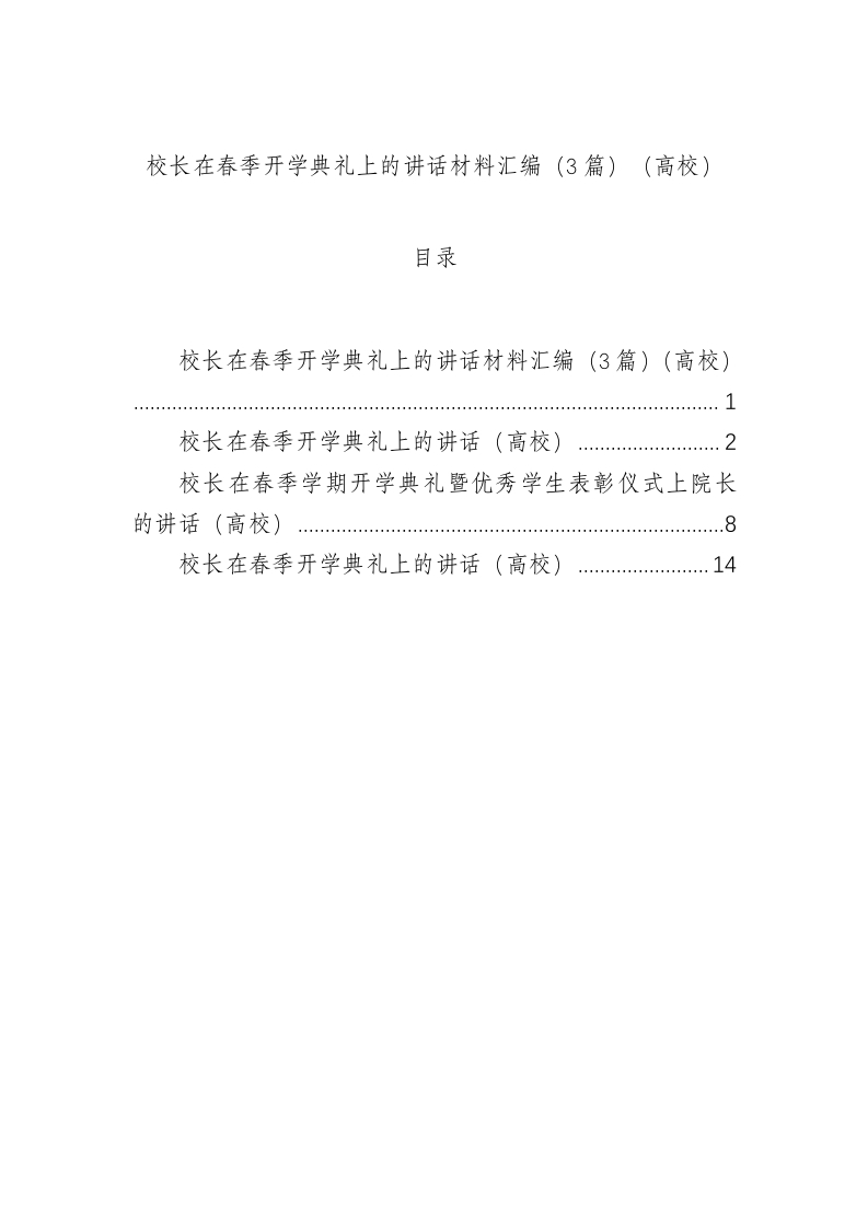 / 校长在春季开学典礼上的讲话材料汇编(3篇)(高校)