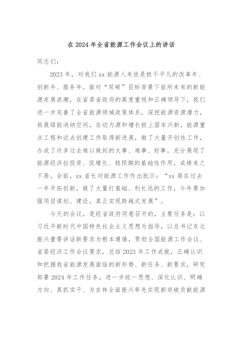 / 在2024年全省能源工作会议上的讲话稿