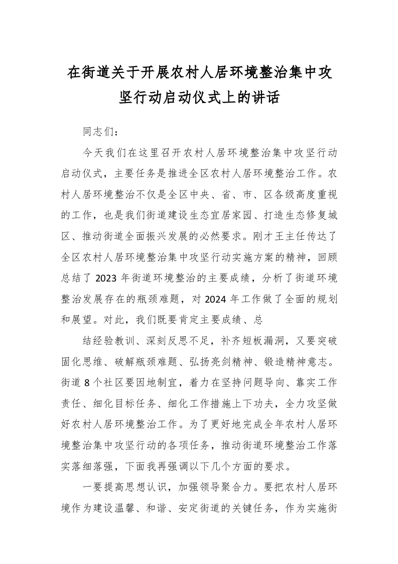 / 在街道关于开展农村人居环境整治集中攻坚行动启动仪式上的讲话稿