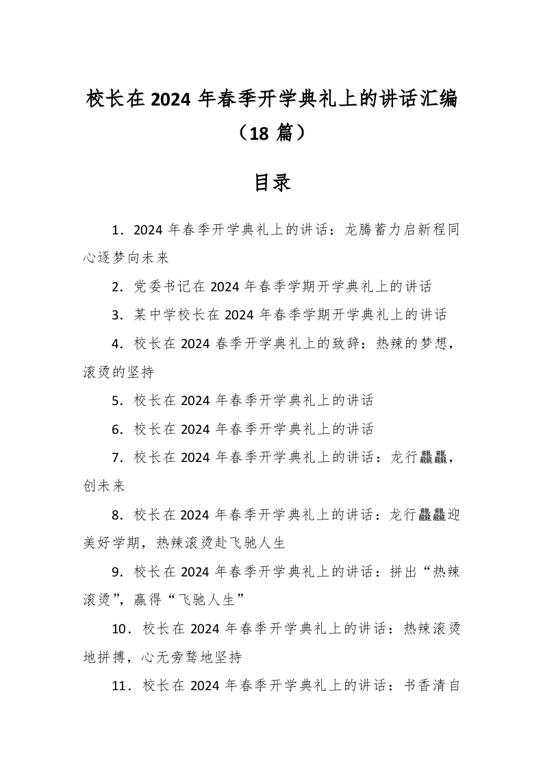 / (18篇)校长在2024年春季开学典礼上的讲话稿汇编