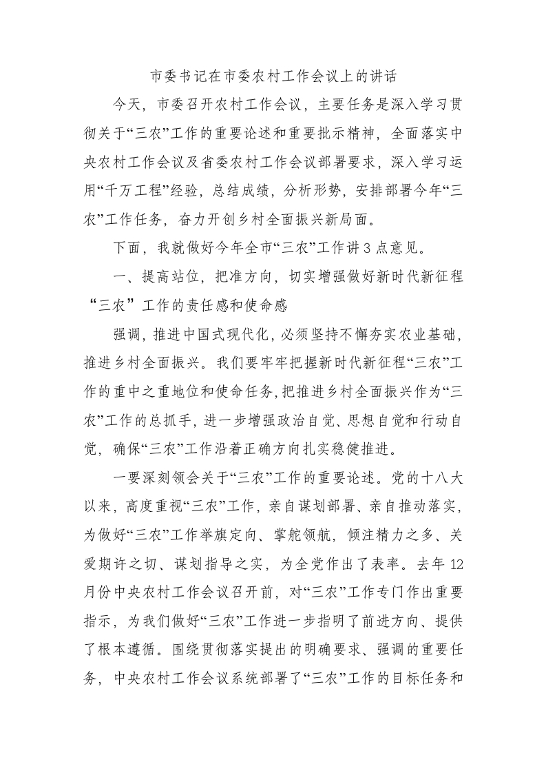 / 书记在市委农村工作会议上的讲话