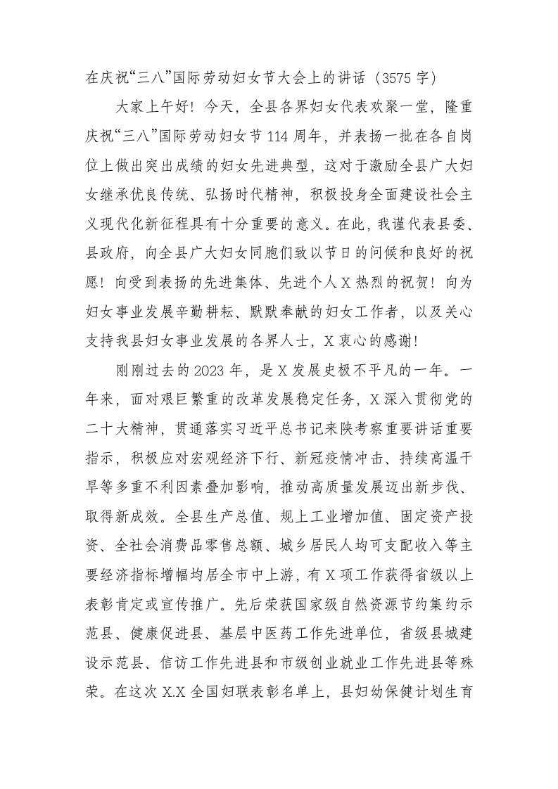 / 在庆祝“三八”国际劳动妇女节大会上的讲话