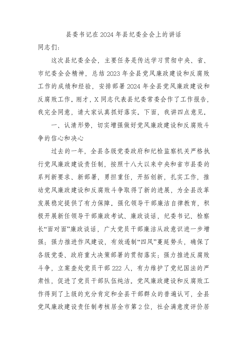 / 书记在2024年县纪委全会上的讲话