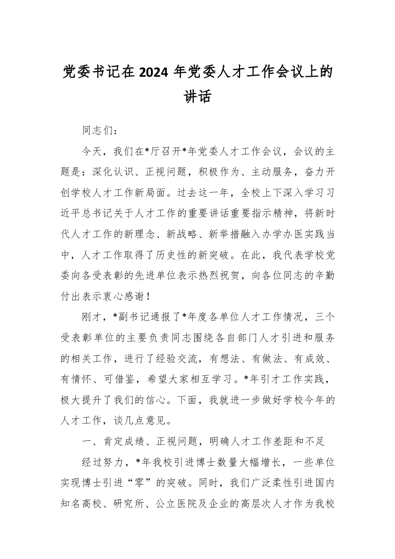 / 党委书记在2024年党委人才工作会议上的讲话稿