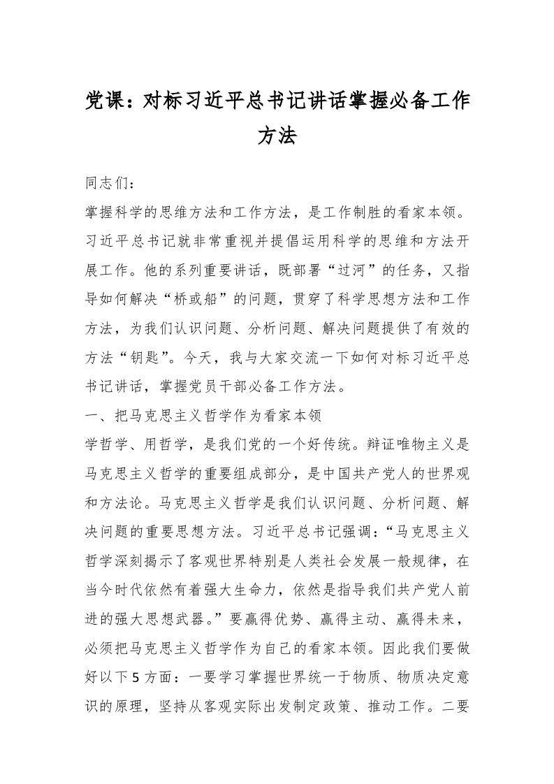 / 党课:对标习近平总书记讲话稿 掌握必备工作方法