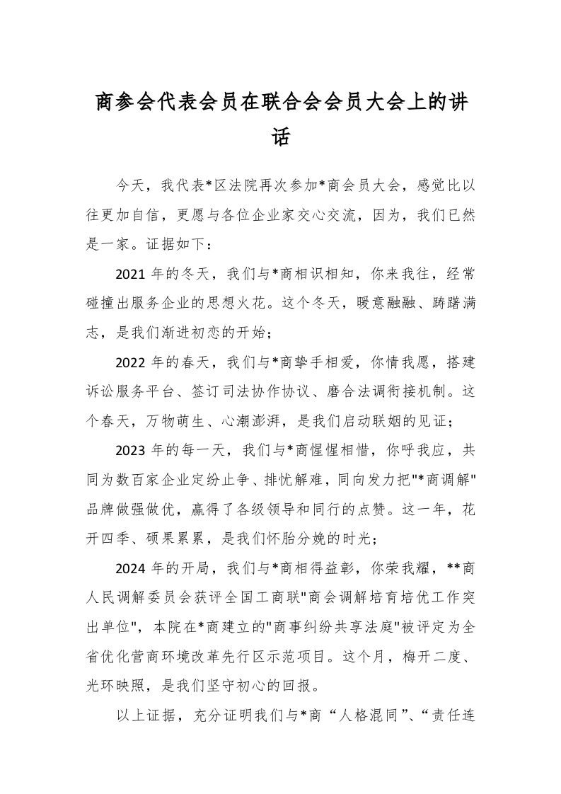 / 商参会代表会员在联合会会员大会上的讲话稿