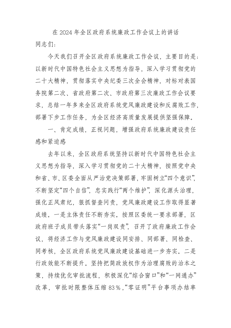 / 在2024年全区政府系统廉政工作会议上的讲话