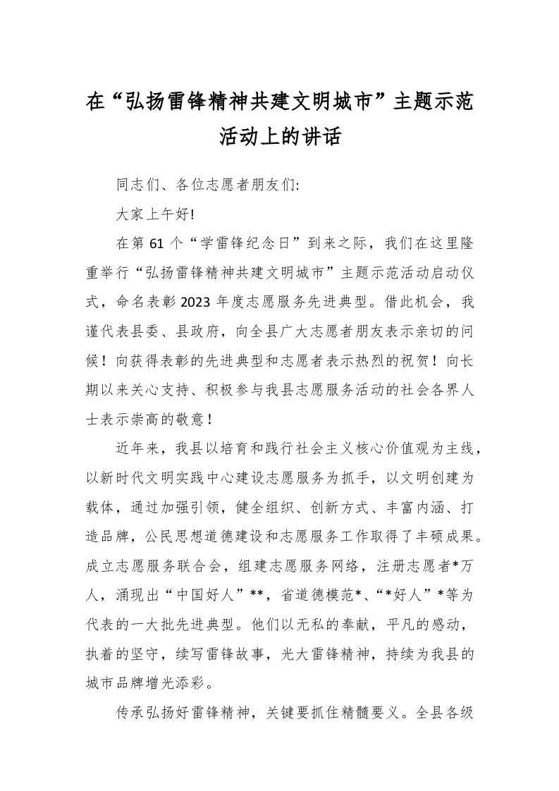 / 在“弘扬雷锋精神共建文明城市”主题示范活动上的讲话稿