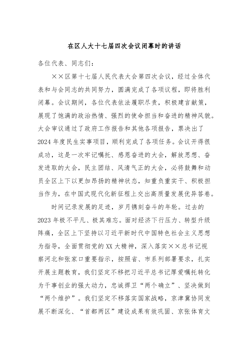 / 在区人大十七届四次会议闭幕时的讲话稿