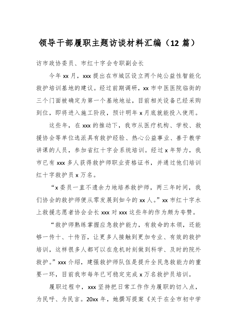 / (12篇)领导干部履职主题访谈材料汇编