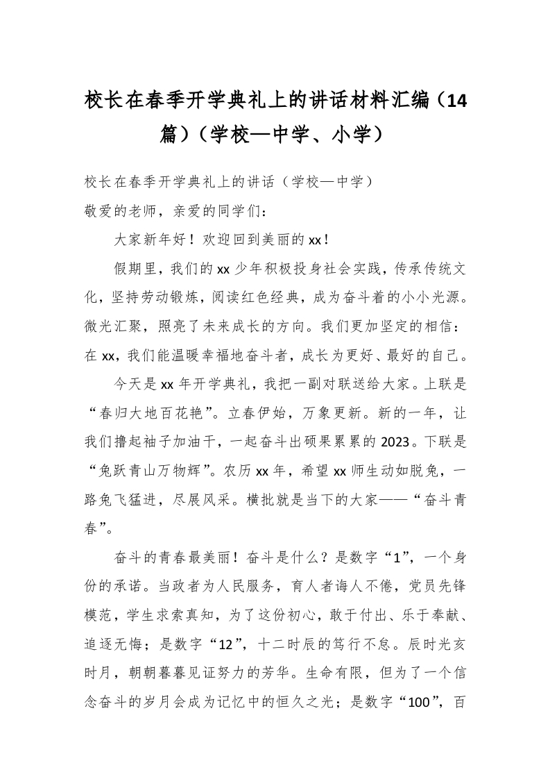 / (14篇)校长在春季开学典礼上的讲话稿材料汇编(学校—中学、小学)