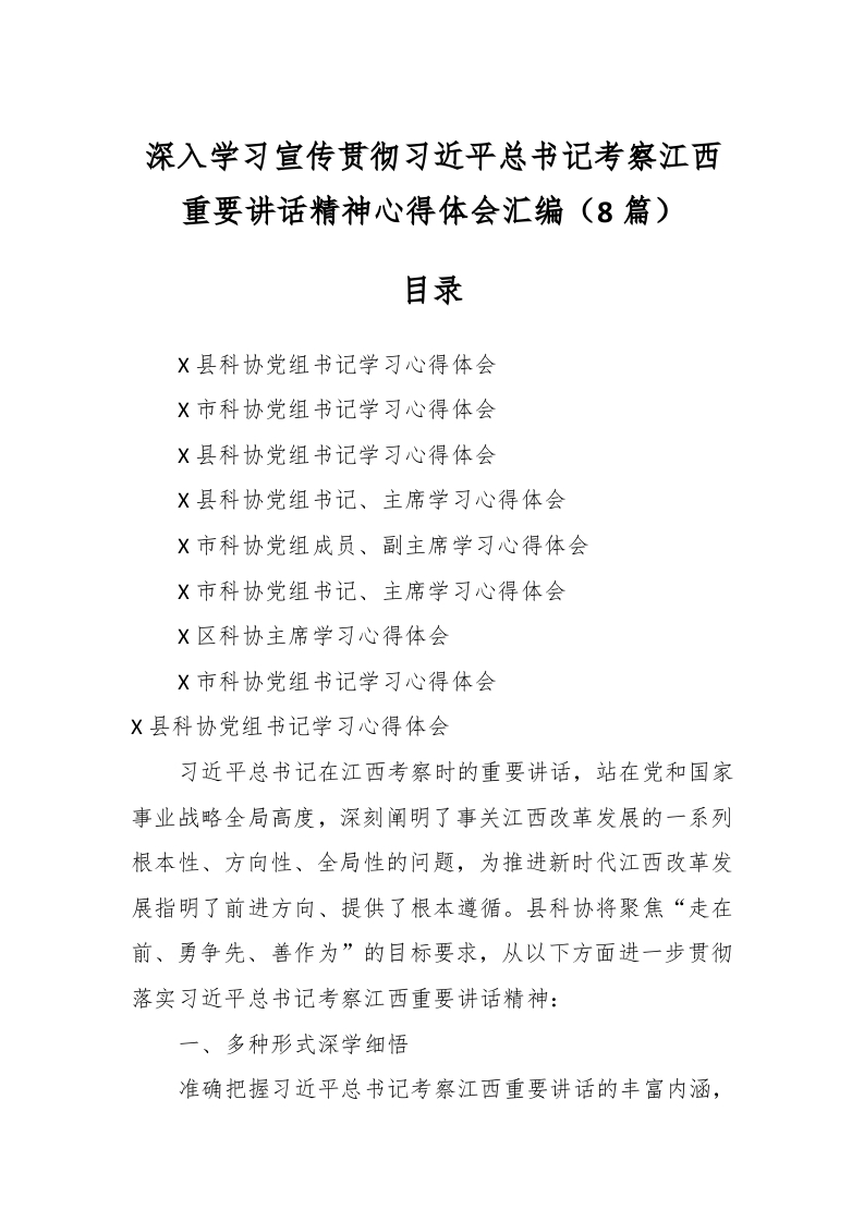/ (8篇)深入学习宣传贯彻习近平总书记考察江西重要讲话稿精神心得体会汇编