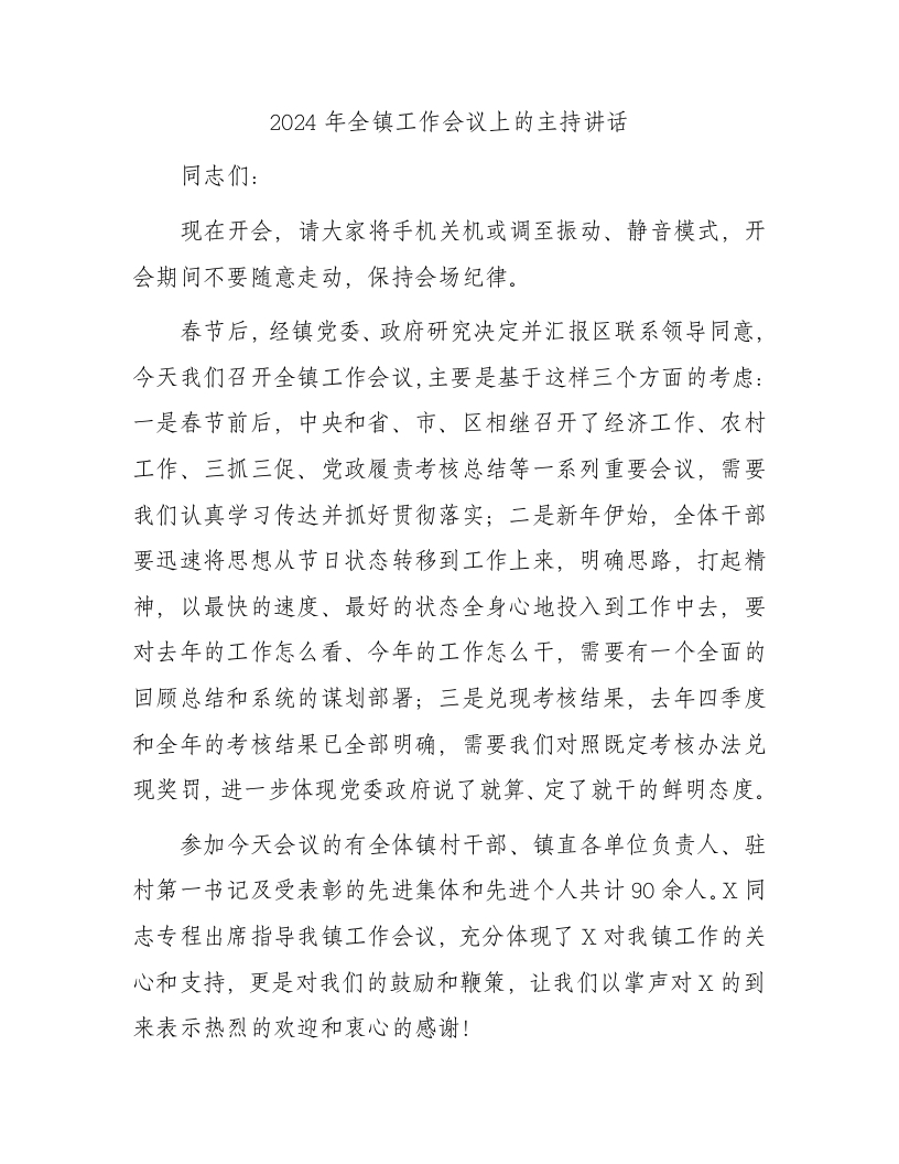 / 2024年全镇工作会议上的主持讲话