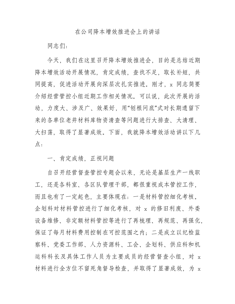 / 国企降本增效推进会上的讲话