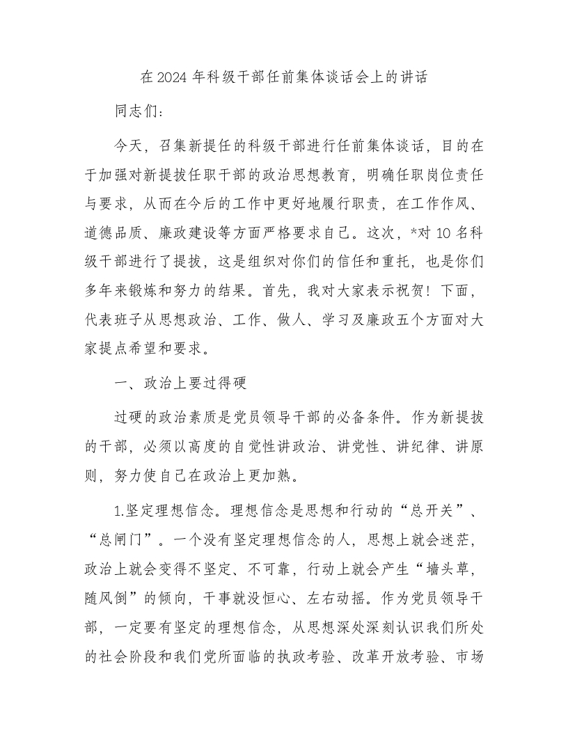 / 在2024年科级干部任前集体谈话会上的讲话(1)