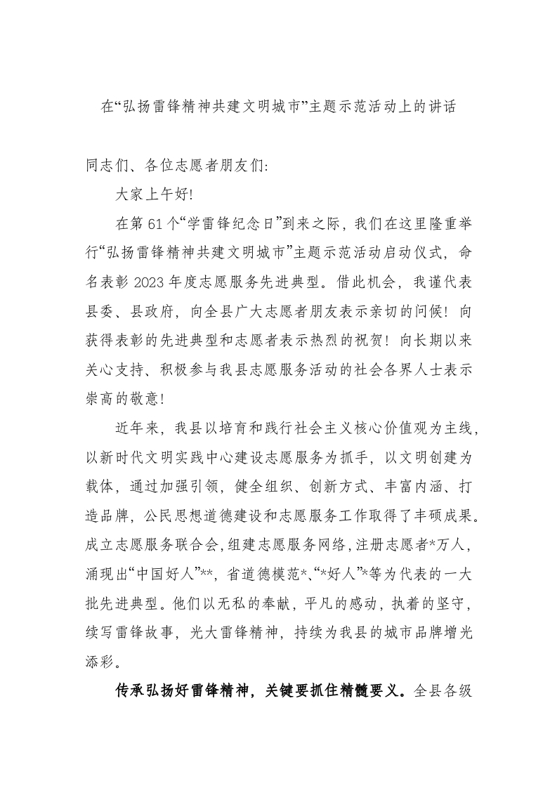 / 在“弘扬雷锋精神+共建文明城市”主题示范活动上的讲话