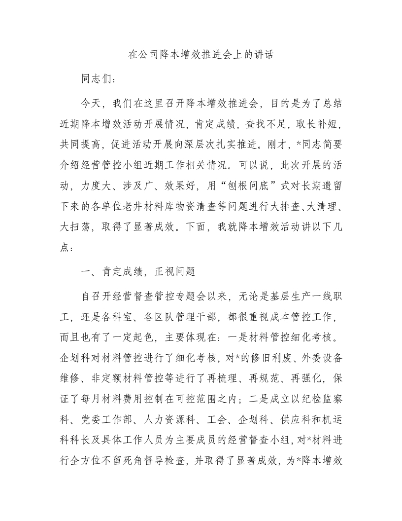 / 在公司降本增效推进会上的讲话