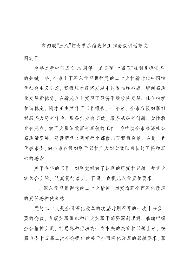/ 市妇联三八妇女节总结表彰工作会议讲话大会