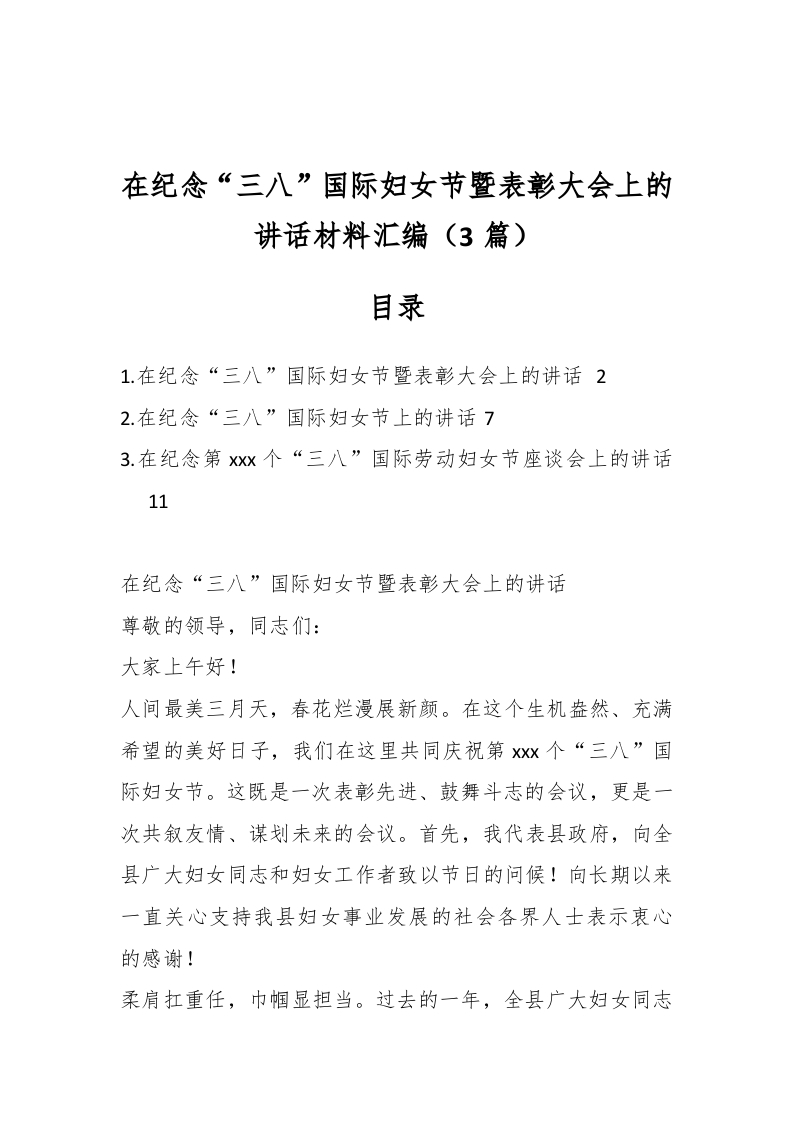 / (3篇)在纪念“三八”国际妇女节暨表彰大会上的讲话稿材料汇编