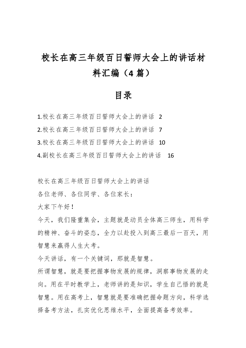/ (4篇)校长在高三年级百日誓师大会上的讲话稿材料汇编