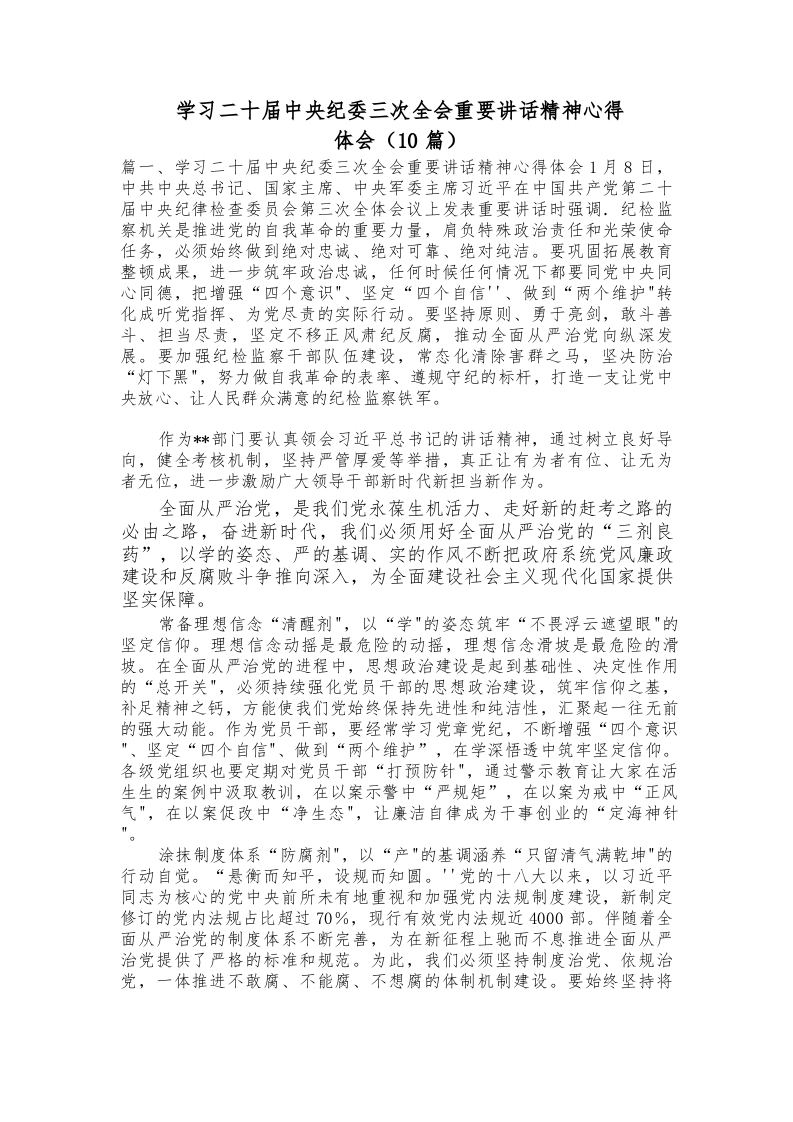 / (10篇)学习二十届中央纪委三次全会重要讲话稿精神心得