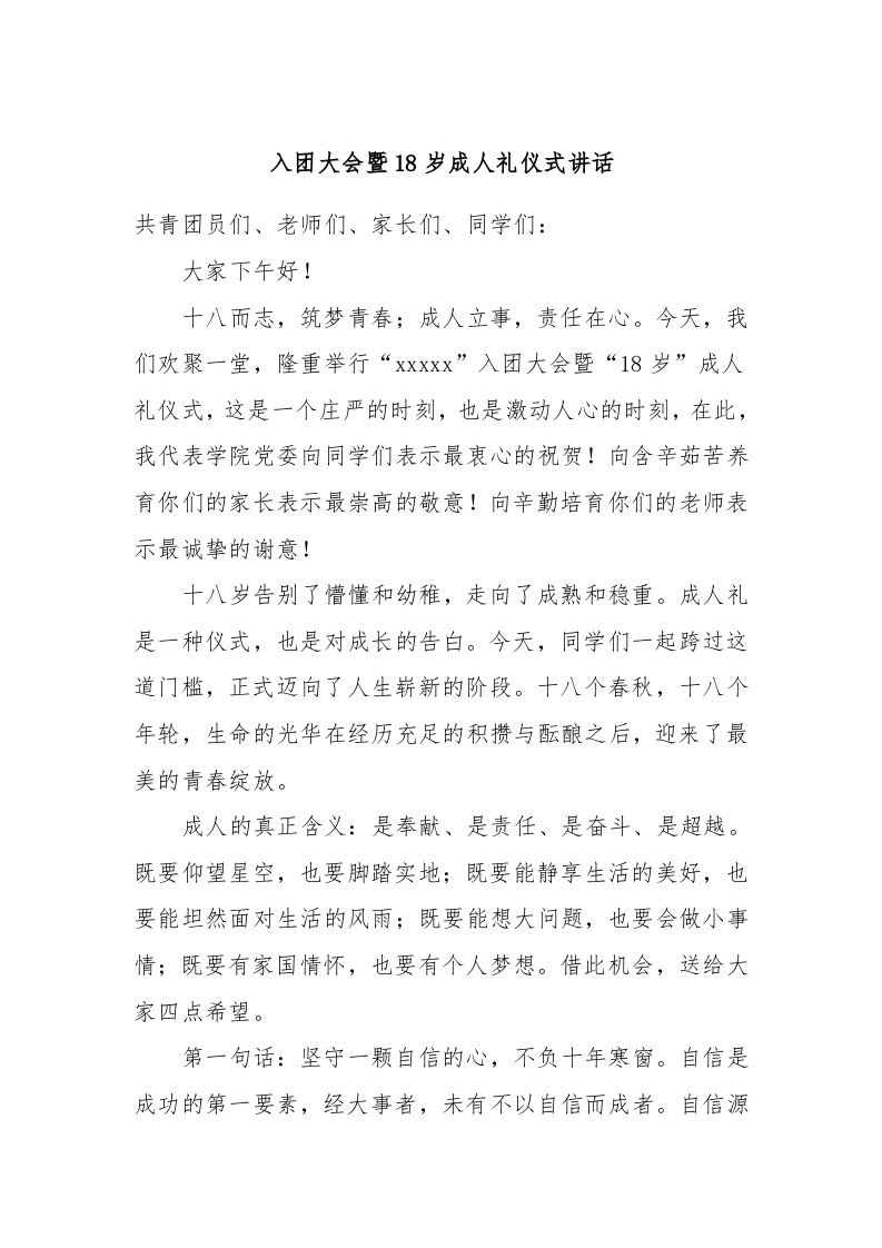 / 入团大会暨18岁成人礼仪式讲话稿