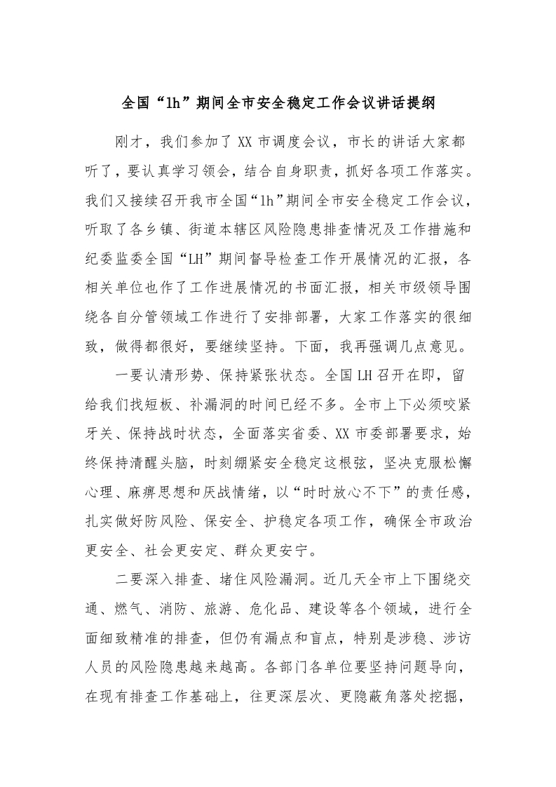 / 全国“lh”期间全市安全稳定工作会议讲话稿提纲
