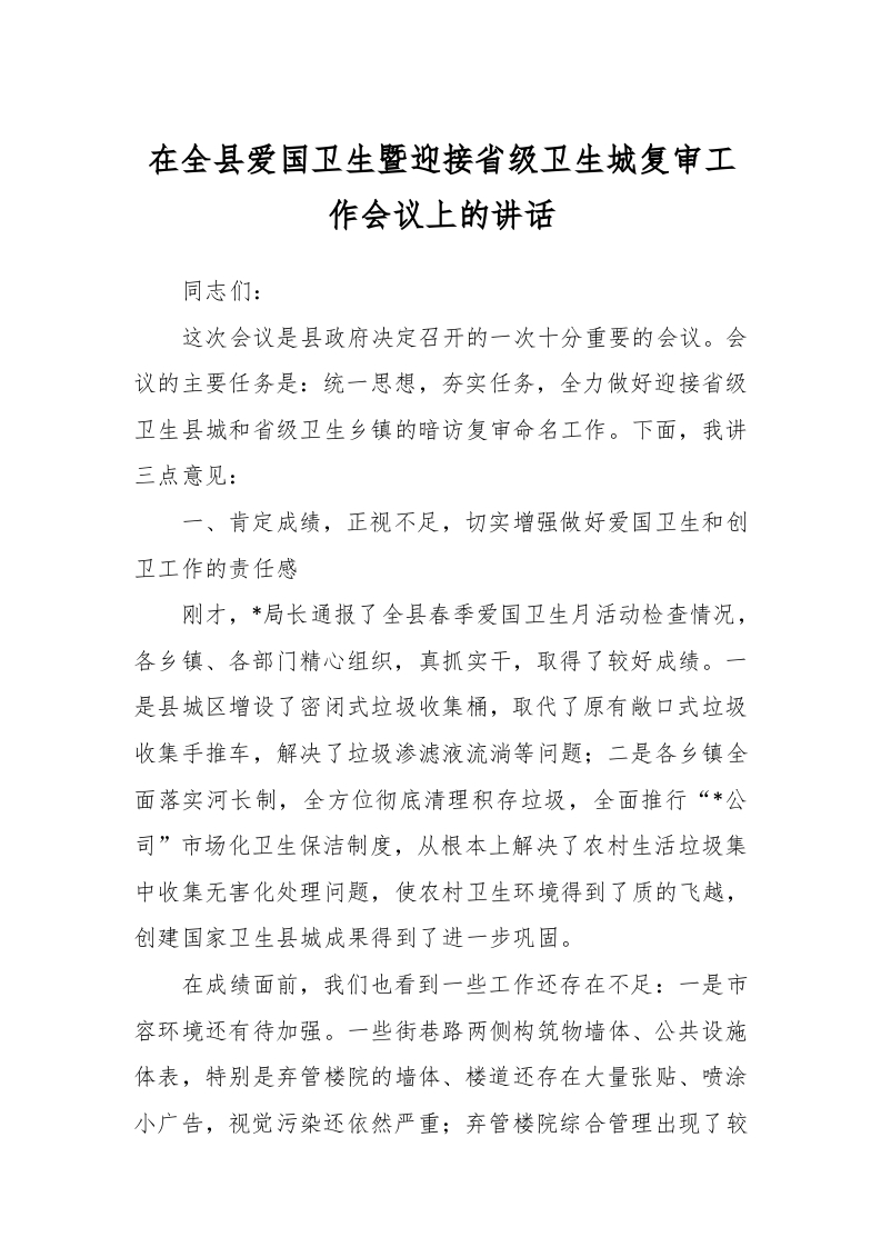 / 在全县爱国卫生暨迎接省级卫生城复审工作会议上的讲话稿