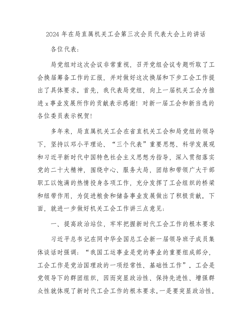 / 2024年在局直属机关工会第三次会员代表大会上的讲话