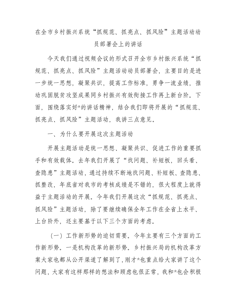 / 在全市乡村振兴系统“抓规范、抓亮点、抓风险”主题活动动员部署会上的讲话