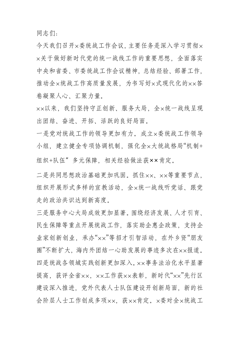 在统战工作会议上的讲话
