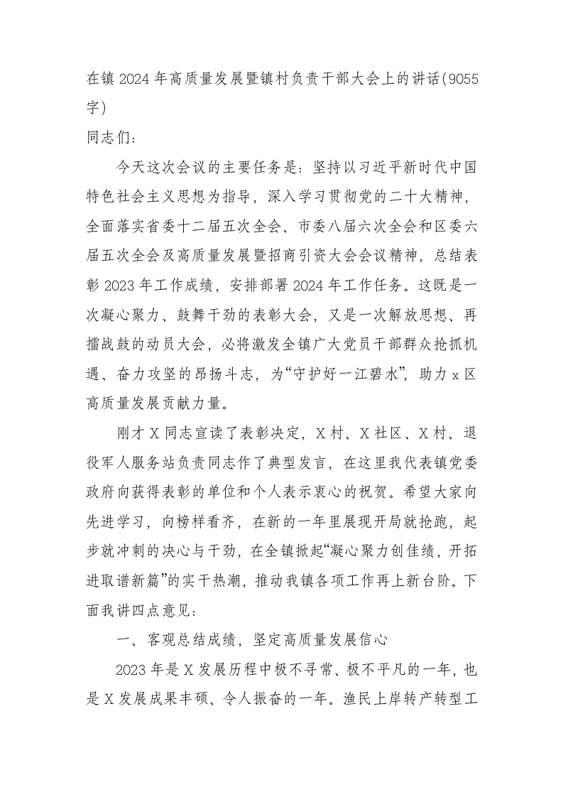 / 在镇2024年高质量发展暨镇村负责干部大会上的讲话