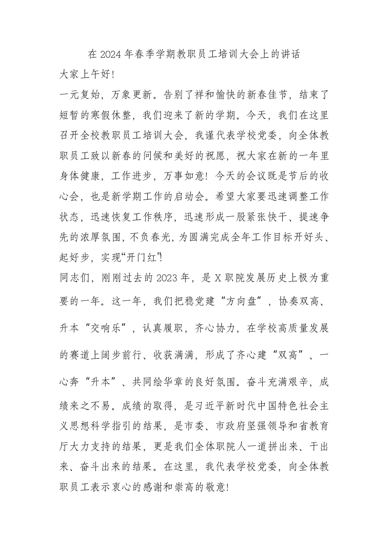 / 在2024年春季学期教职员工培训大会上的讲话