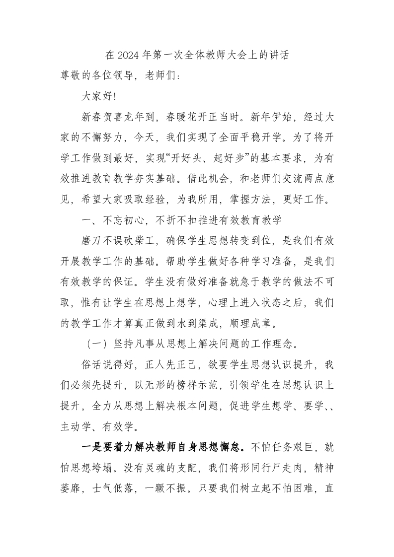 / 在2024年第一次全体教师大会上的讲话