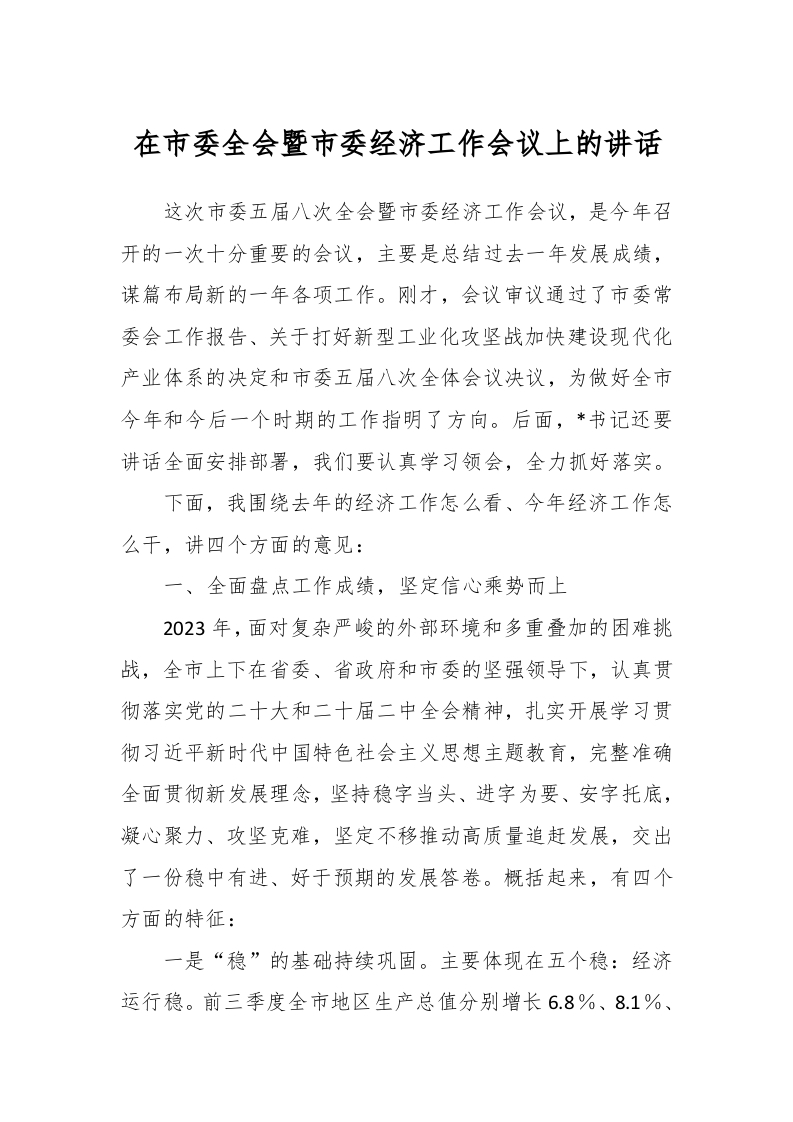 / 在市委全会暨市委经济工作会议上的讲话稿
