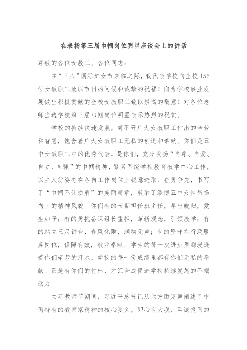 / 在表扬第三届巾帼岗位明星座谈会上的讲话稿