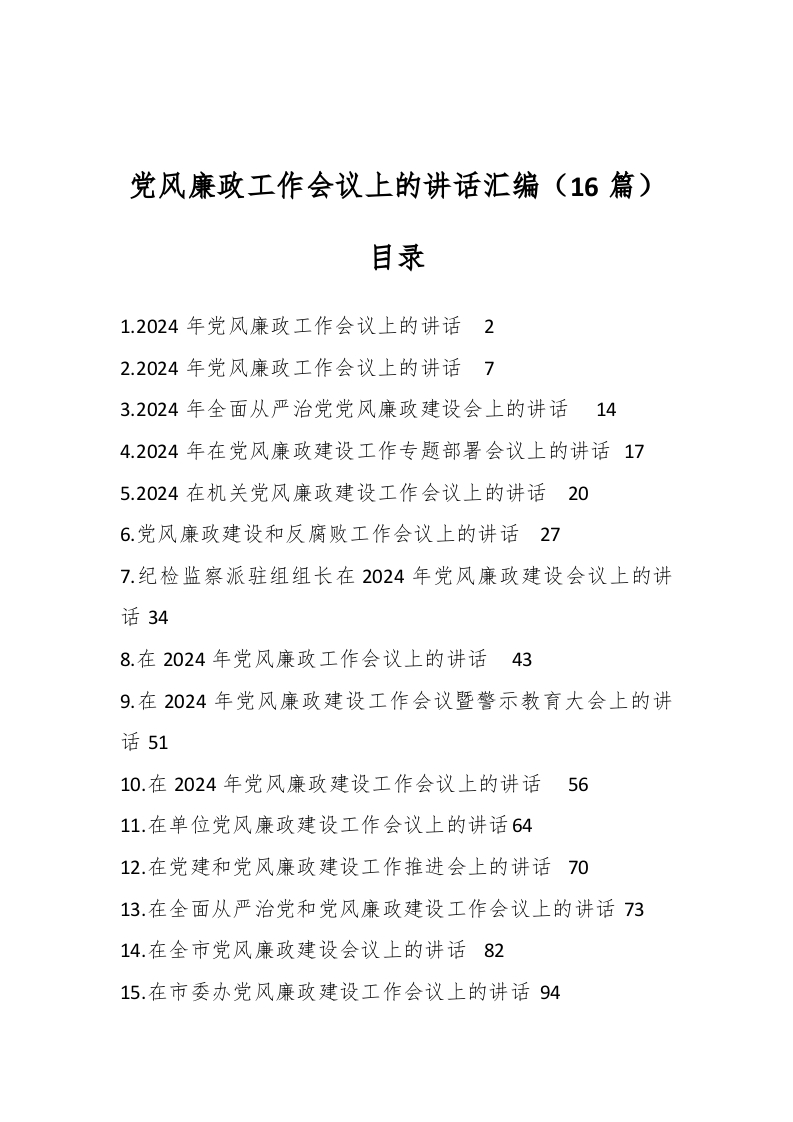 / (16篇)党风廉政工作会议上的讲话稿汇编