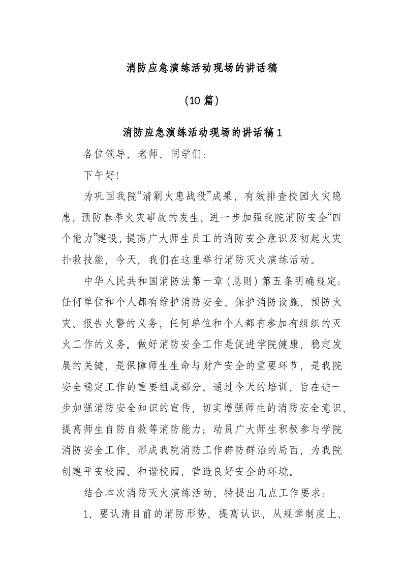 / (10篇)消防应急演练活动现场的讲话稿