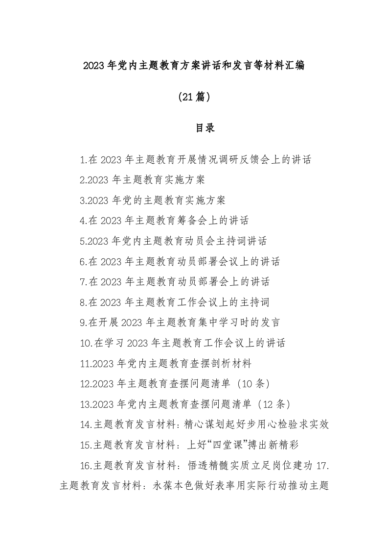 (21篇)2023年党内主题教育方案讲话和发言等材料汇编
