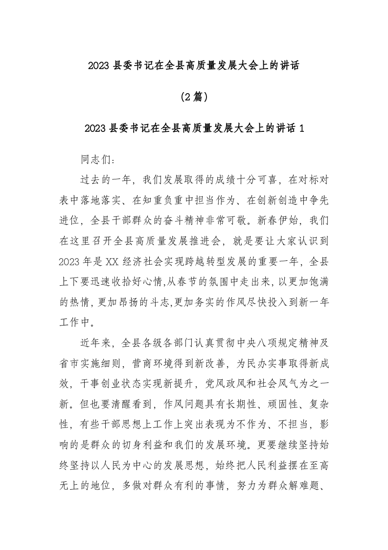 / (2篇)2023县委书记在全县高质量发展大会上的讲话