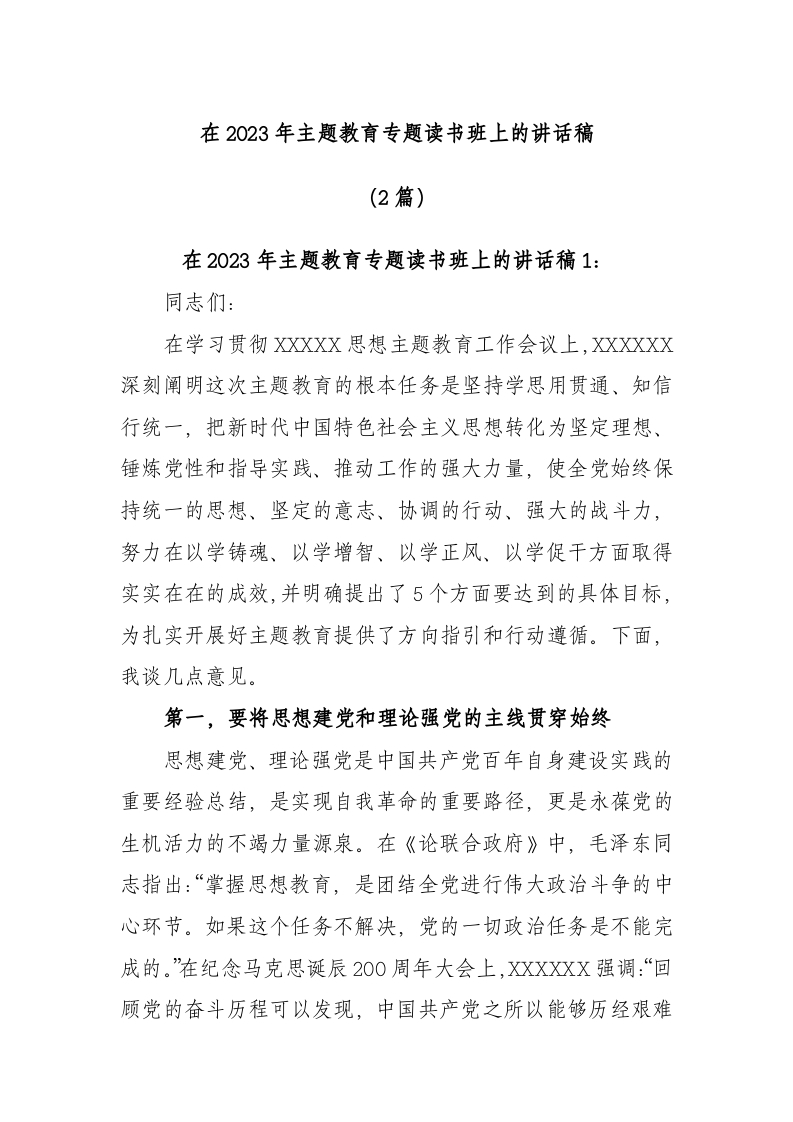 / (2篇)2023年主题教育专题读书班上的讲话稿