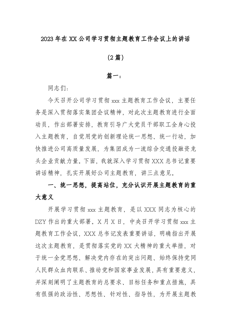 / (2篇)2023年在公司学习贯彻主题教育工作会议上的讲话