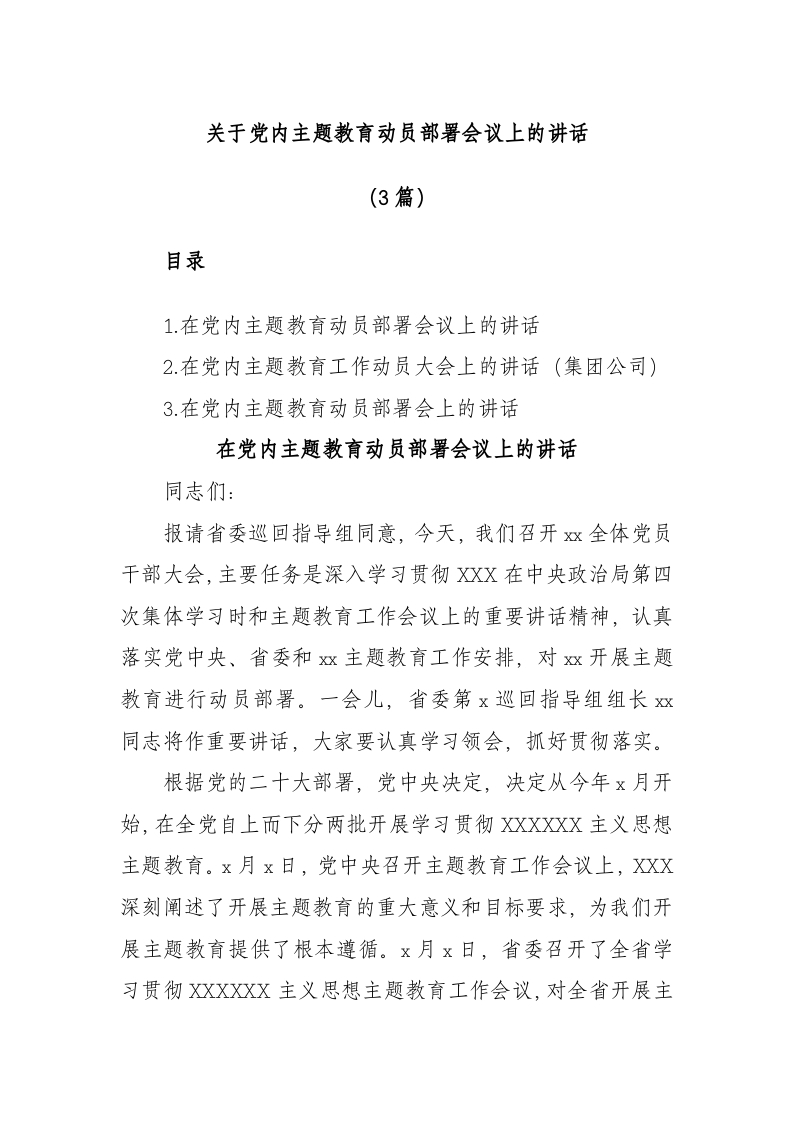 / (3篇)党内主题教育动员部署会议上的讲话