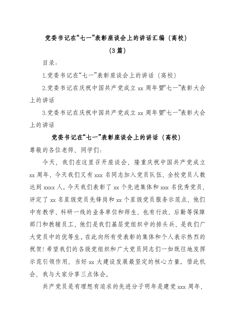 / (3篇)党委书记在“七一”表彰座谈会上的讲话汇编(高校)