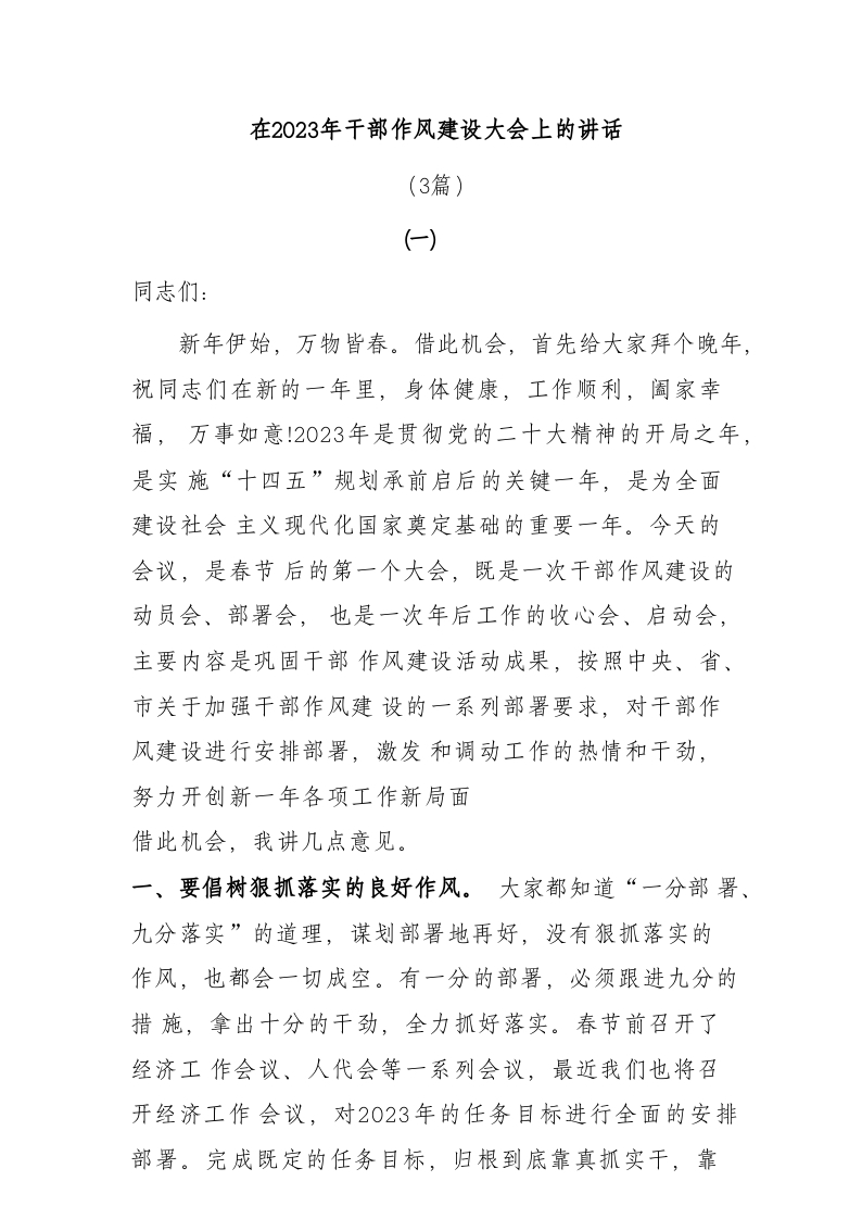/ (3篇)在2023年干部作风建设大会上的讲话