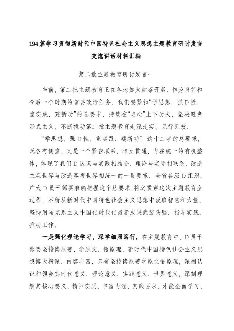 / 194篇学习贯彻新时代中国特色社会主义思想主题教育研讨发言交流讲话范文汇编第二批可用