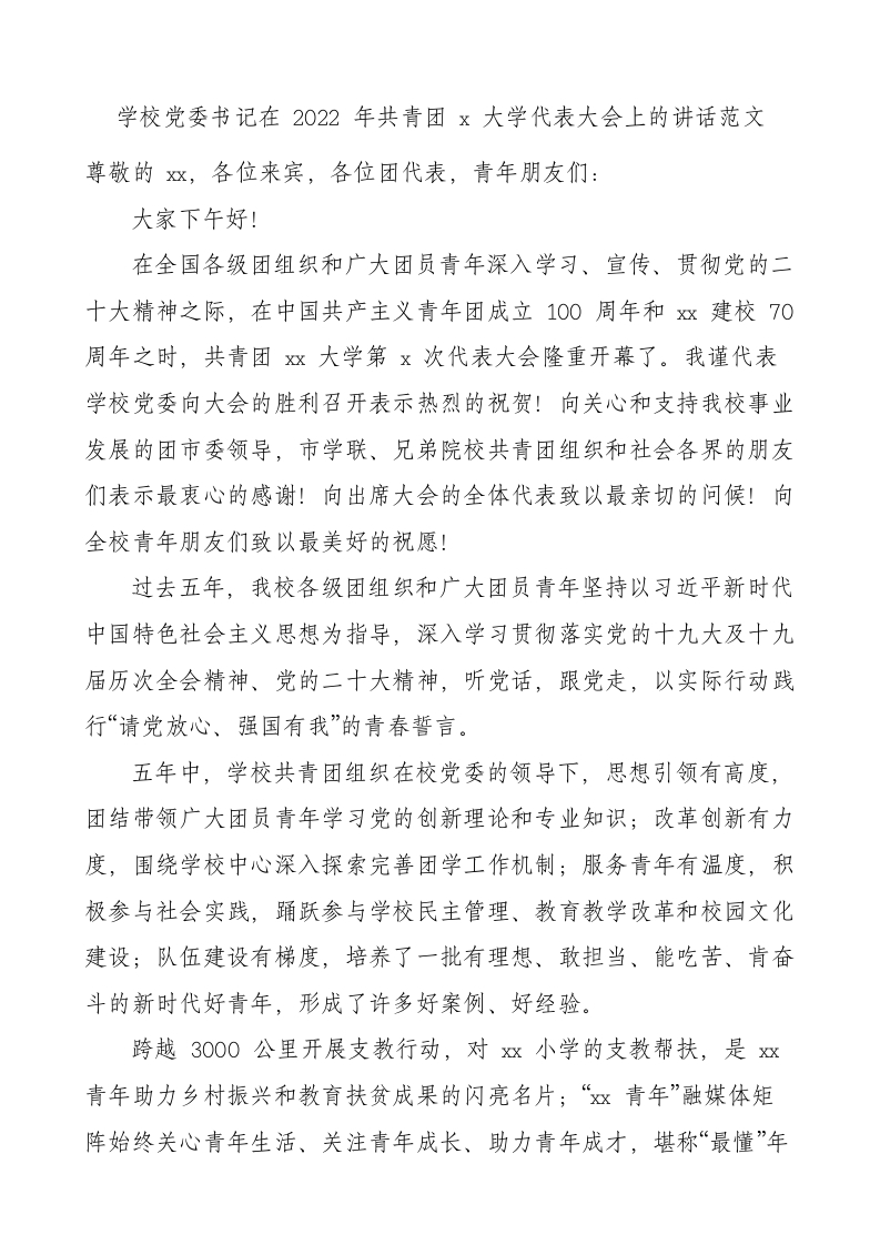 2022年共青团x大学代表大会上的讲话范文高校学院致辞