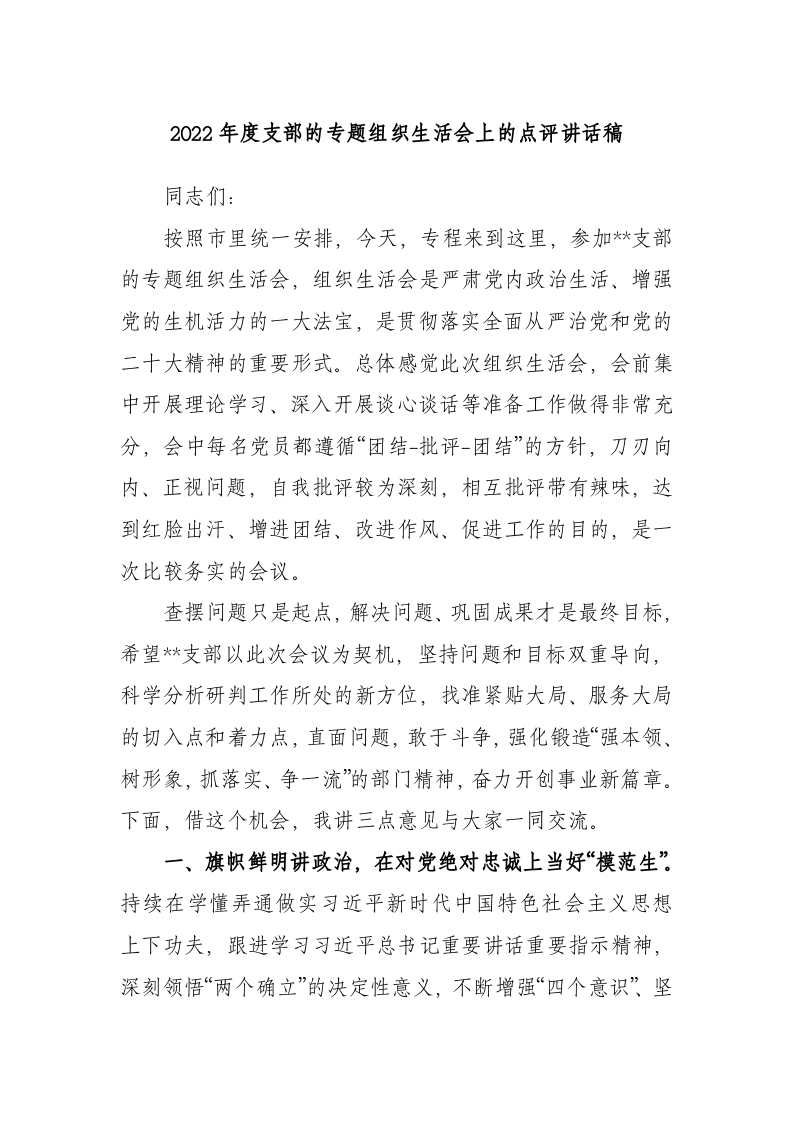 / 2022年度支部的专题组织生活会上的点评讲话稿